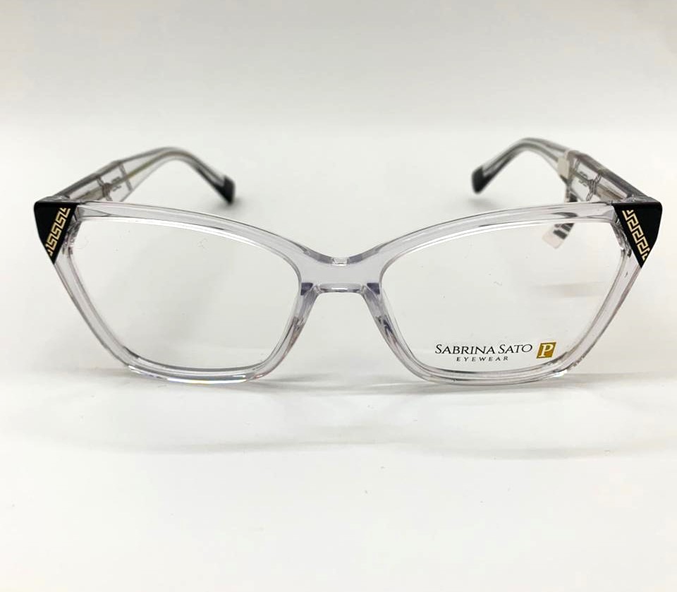 ARMAÇÃO DE ÓCULOS SABRINA SATO NO MATERIAL ACETATO SS905C1 COR TRANSPARENTE COM DETALHE PRETO E DOURADO.